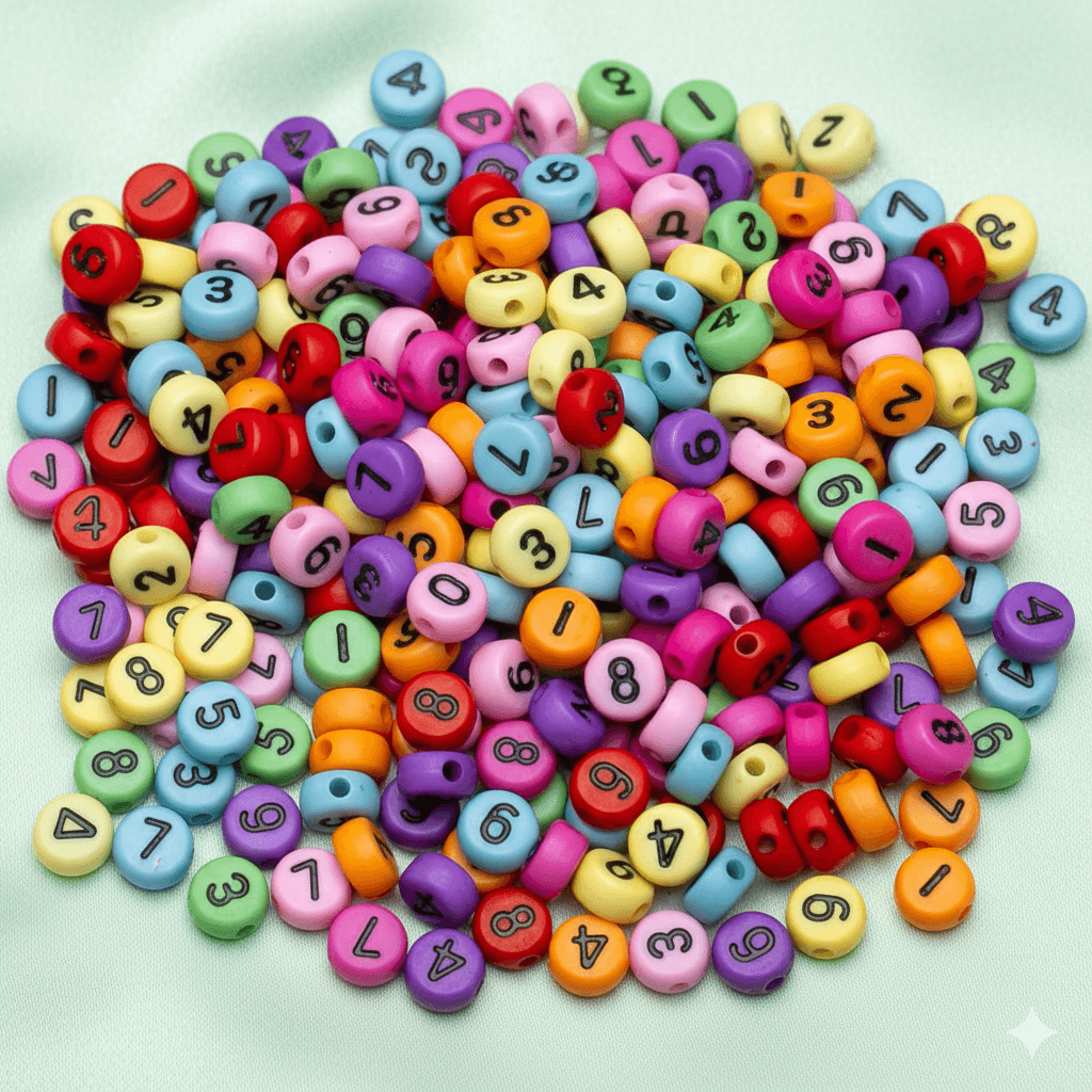 White Acrylic Round with Multicolor 0-9 Number Letter Beads